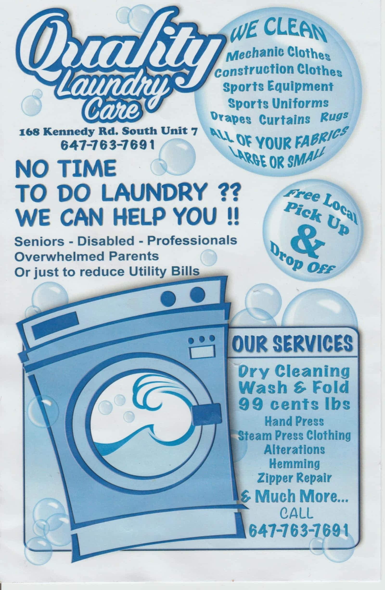 Quality Care Dry Cleaning Services Wash Fold A Lterations Opening Hours 7 168 Kennedy Rd S Brampton On